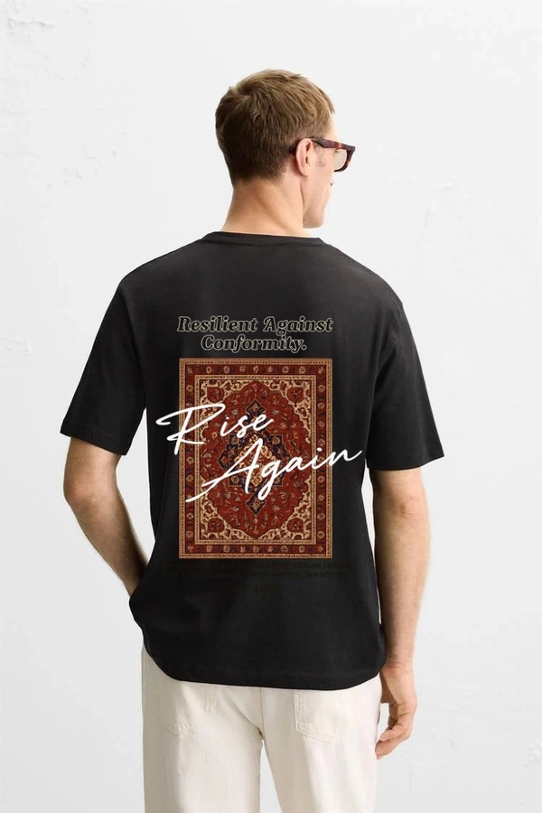 Back Design: Persian carpet-inspired art with “Rise Again” typography & slogan